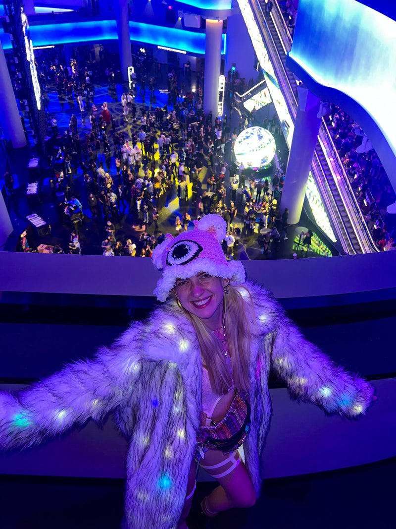 White Faux Fur Glow Vest, featuring cutting-edge Smart LED Lights
